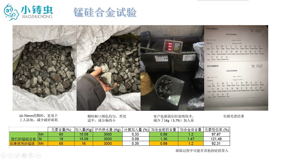 成分: Mn>65%, Si>17%, C<3%, S<0.04%, <0.25%